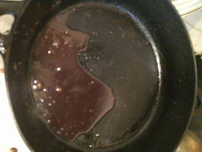 焼いた後の焦げつき?的なのを赤ワインでこそげ落として、さっきの野菜に加えます