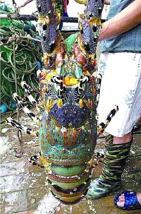 中国で長さ1メートルの超巨大伊勢エビが捕獲される!