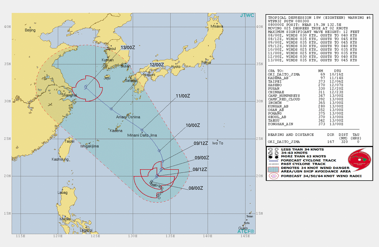 米軍予想では奄美と沖縄本島の間を抜けるようだが