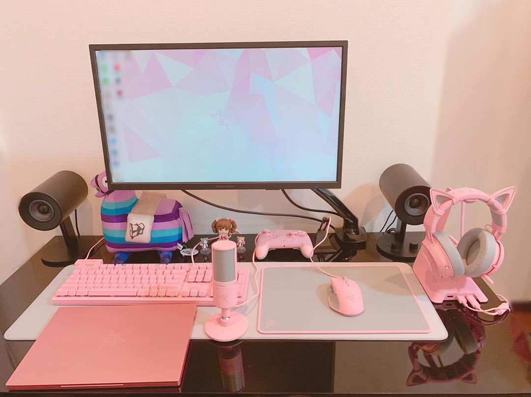PC周りがピンク色に統一されて可愛くなってきました??