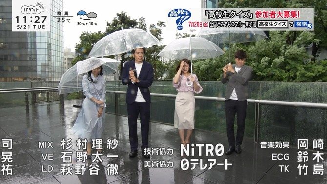 【画像】女子アナさん、スカートが雨で濡れて下半身のラインをくっきりしてしまう
