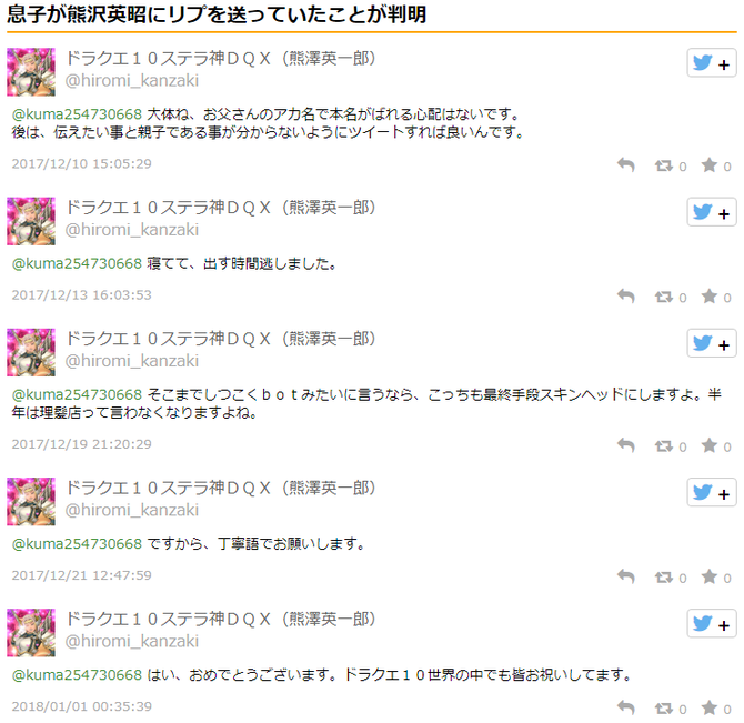 熊澤英一郎と熊澤英昭と思われるアカウントのツイッターのやり取りwww