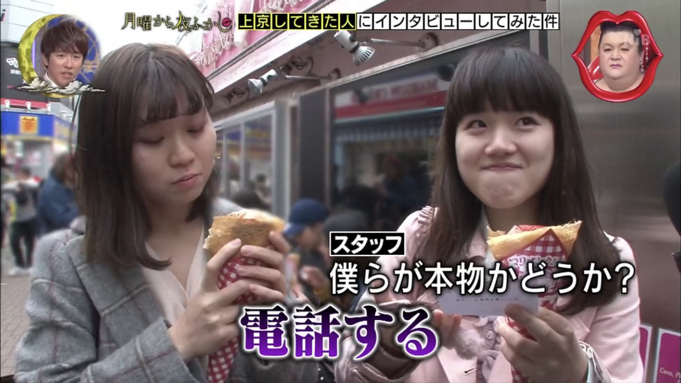 インタビュー受けてるからクレープ食べずに持ってるところみると育ちはいいんやろなぁって思う