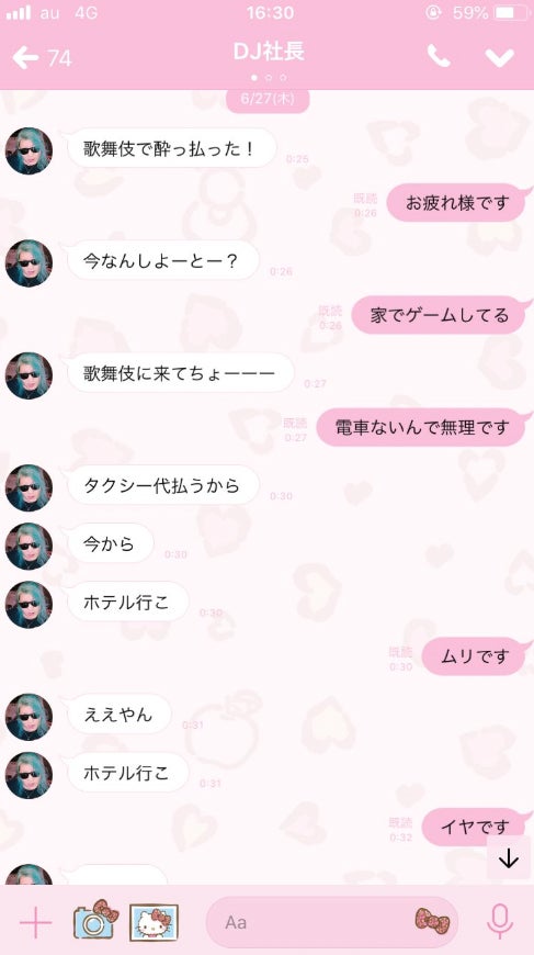 レペゼン地球の事務所であるLife groupに7月より所属しているジャスミンは「突然の報告になりますが数ヶ月前からDJ社長のパワハラが酷く、何度もホテルに誘われてます(10回以上)断ったらクビにするとも言われた事もあり、流石にもう限界です」とDJ社長からパワハラを受けていることを明かし、DJ社長とのLINE画面を公開。
