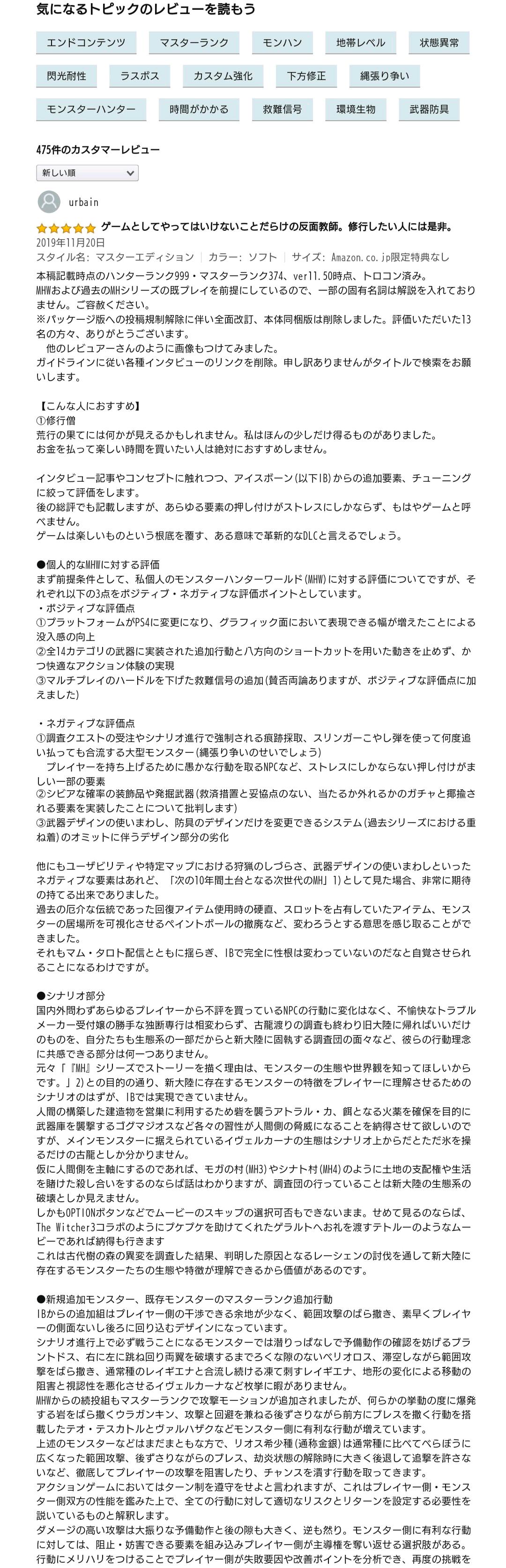 【悲報】モンハンプレイヤーがAmazon史上稀に見る長文レビューを投稿
