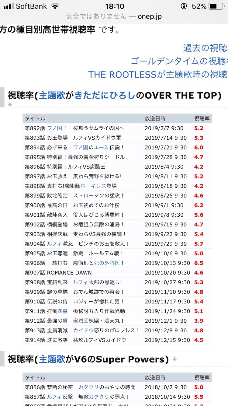 【画像】ワイ「ワンピのアニメの視聴率ってどれくらいなんやろ、どうせ2%とかやろな・・・」→結果www