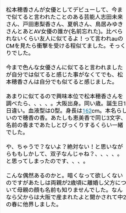 顔が似てるってだけで女優と双子かもと思う妄想力が凄い