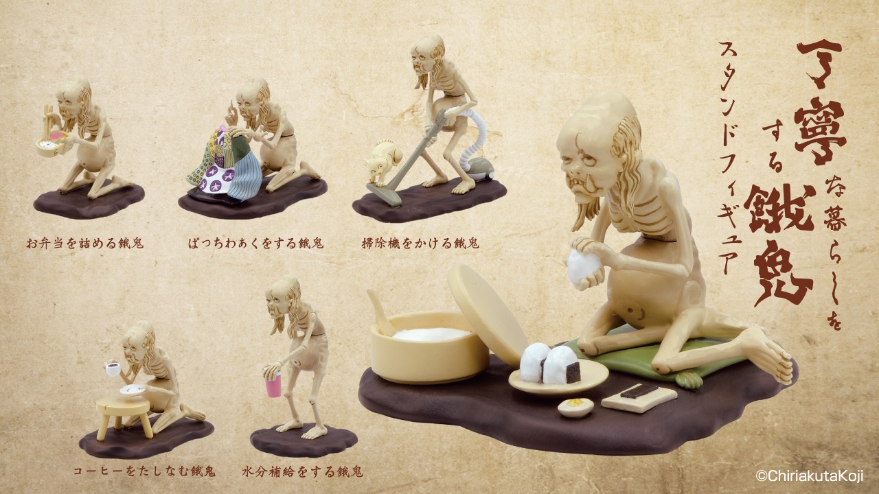 餓鬼が丁寧な暮らしをするイラストが描かれたキーホルダーみたいなのがガチャガチャあってん