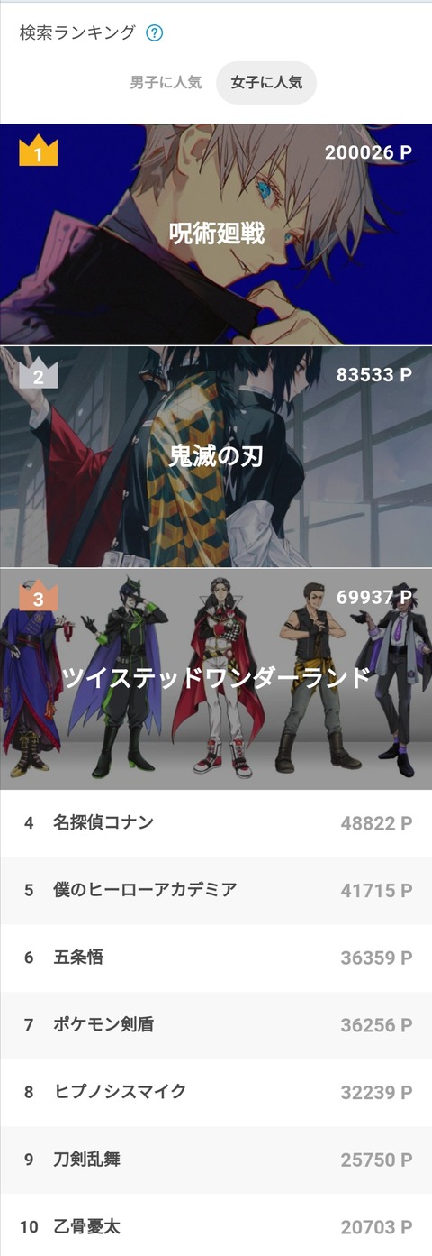 むしろ完結してまだ7位かよ