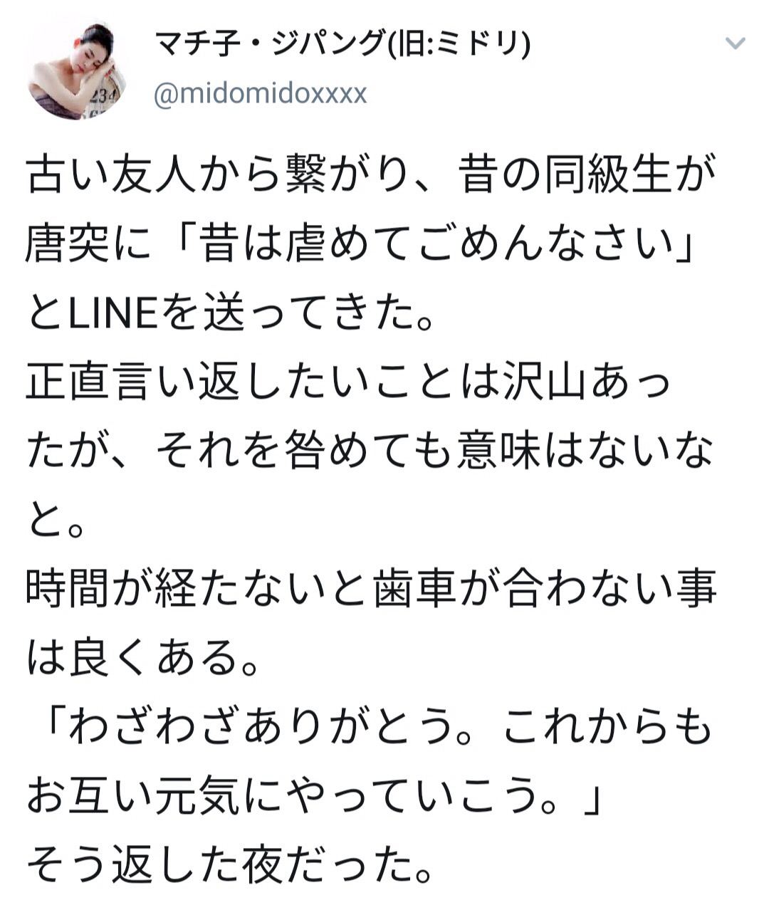 あと、いじめっこっていじめてた事をステータスとして誇る奴がいるから、謝れるだけマシ