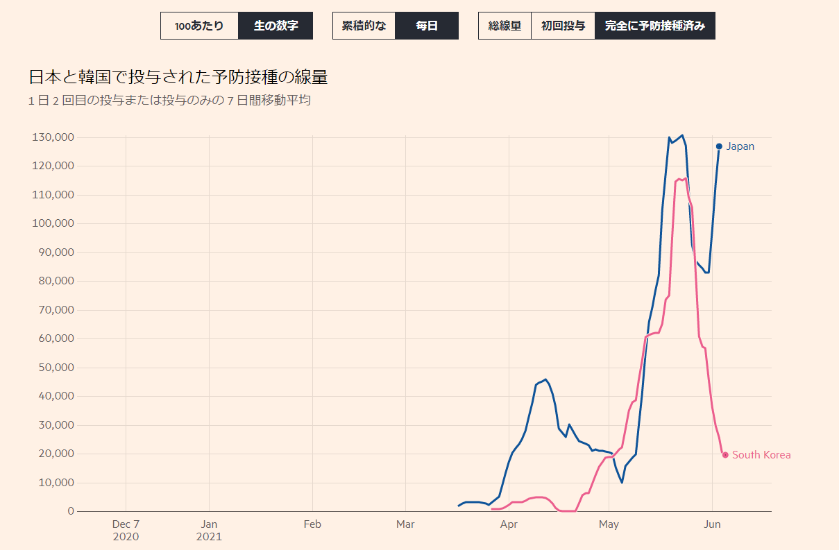 上手くやってたとこは遅い傾向にありそんな中では日本の回数はぶっちぎりで多く率にしても粗製の中国ワクチン使ってるとこ除けば悪くはないよな