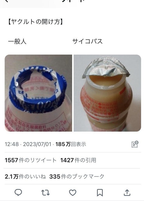 【画像】ヤクルトの開け方でサイコパスが分かる模様