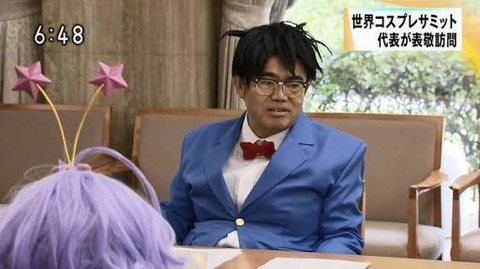 「世界コスプレチャンピオンシップ」に出場する20の国と地域の代表コスプレーヤー40人が2日、自慢のコスプレ姿で、河村たかし名古屋市長と大村秀章愛知県知事を表敬訪問した。
