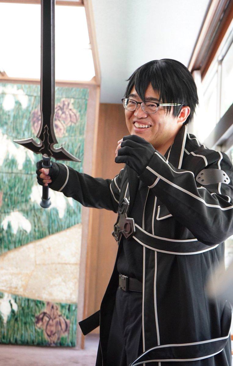 大村知事は「ソードアート・オンライン」の主人公キリトのコスプレで迎えた。