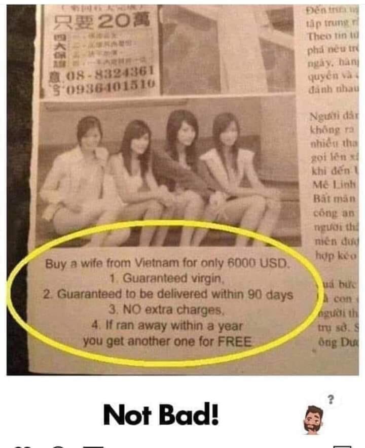 【速報】ベトナム人の嫁を6,000ドルで買えるぞお前ら急げwwwwww