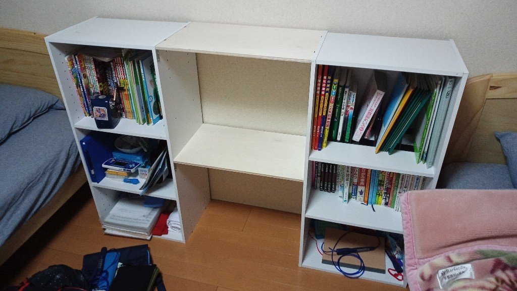 【画像】子供のカラーボックス2個合体させて拡張したDIYパパだけど