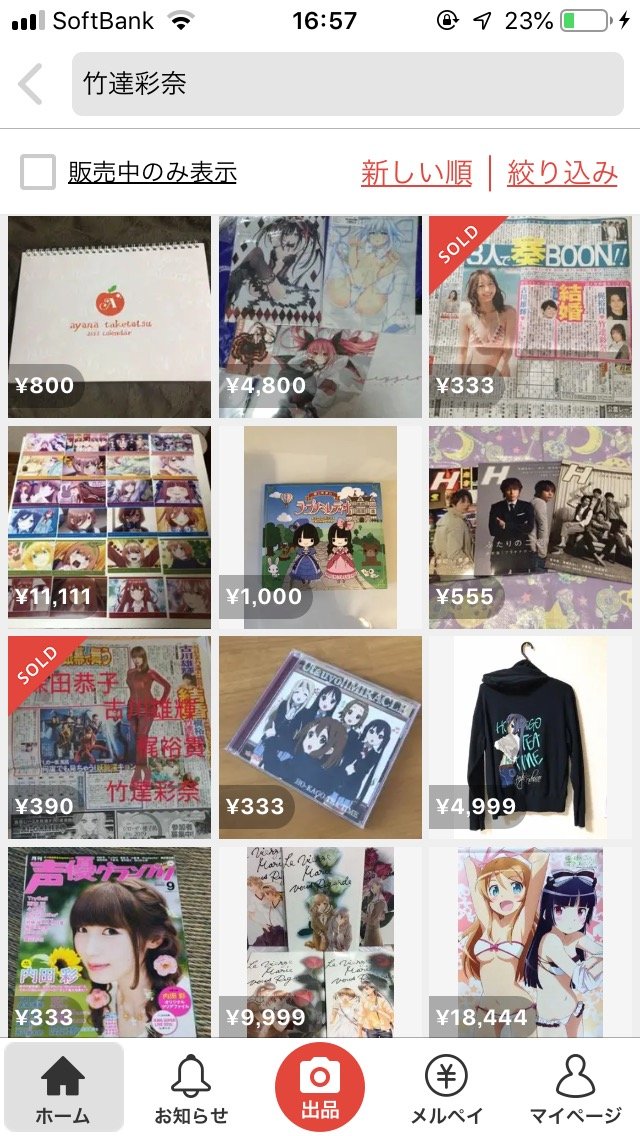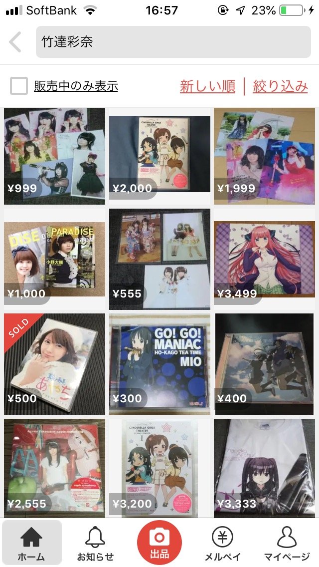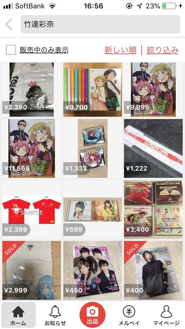 【悲報】竹達彩奈さんのグッズ、続々とメルカリに出品されてしまう
