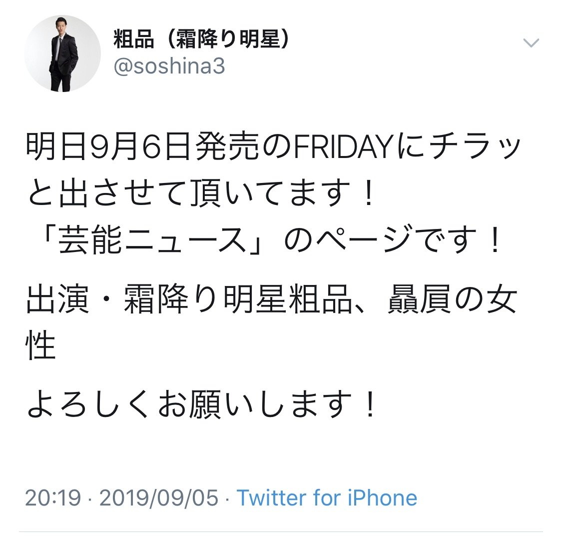【速報】霜降り粗品さん、aiko似の美女とフライデーされる
