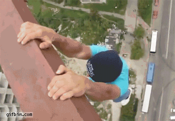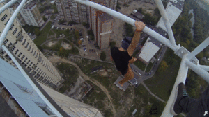 【タマヒュン注意】めっちゃ高いビルでおふざけするgif