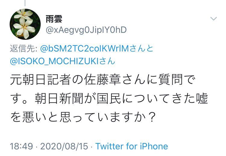 この元朝日新聞記者が「どう思っているのか?」質問しているだけだが?