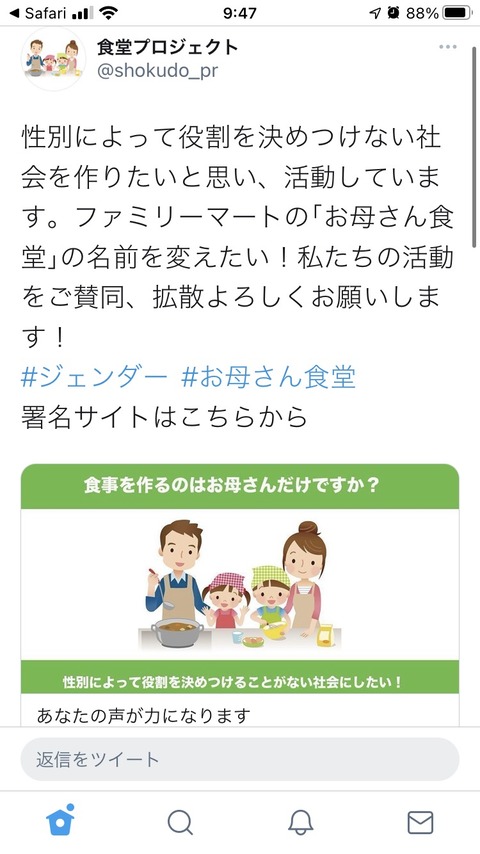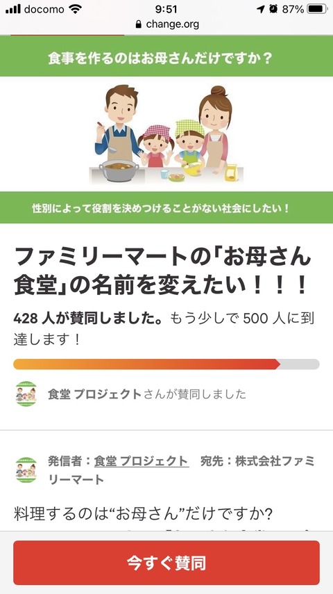 性別によって役割を決めつけない社会を作りたいと思い、活動しています。ファミリーマートの「お母さん食堂」の名前を変えたい!私たちの活動をご賛同、拡散よろしくお願いします!