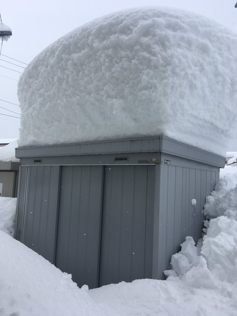 屋根付近まで雪山を踏みかためてスコップでガシガシやればええ