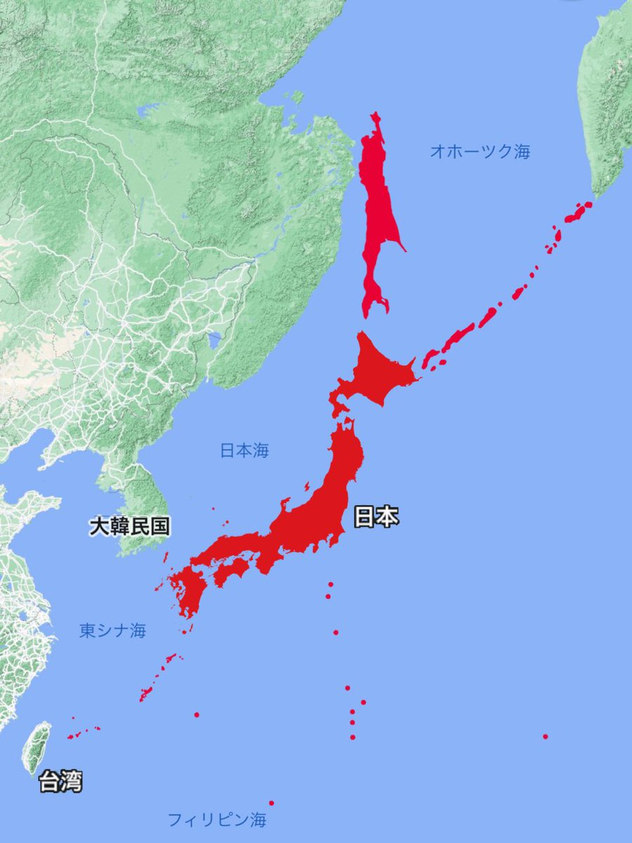 これに韓国、中国の一部、台湾、東南アジアの一部を支配下に入れていた大日本帝国って偉大だったんだなー