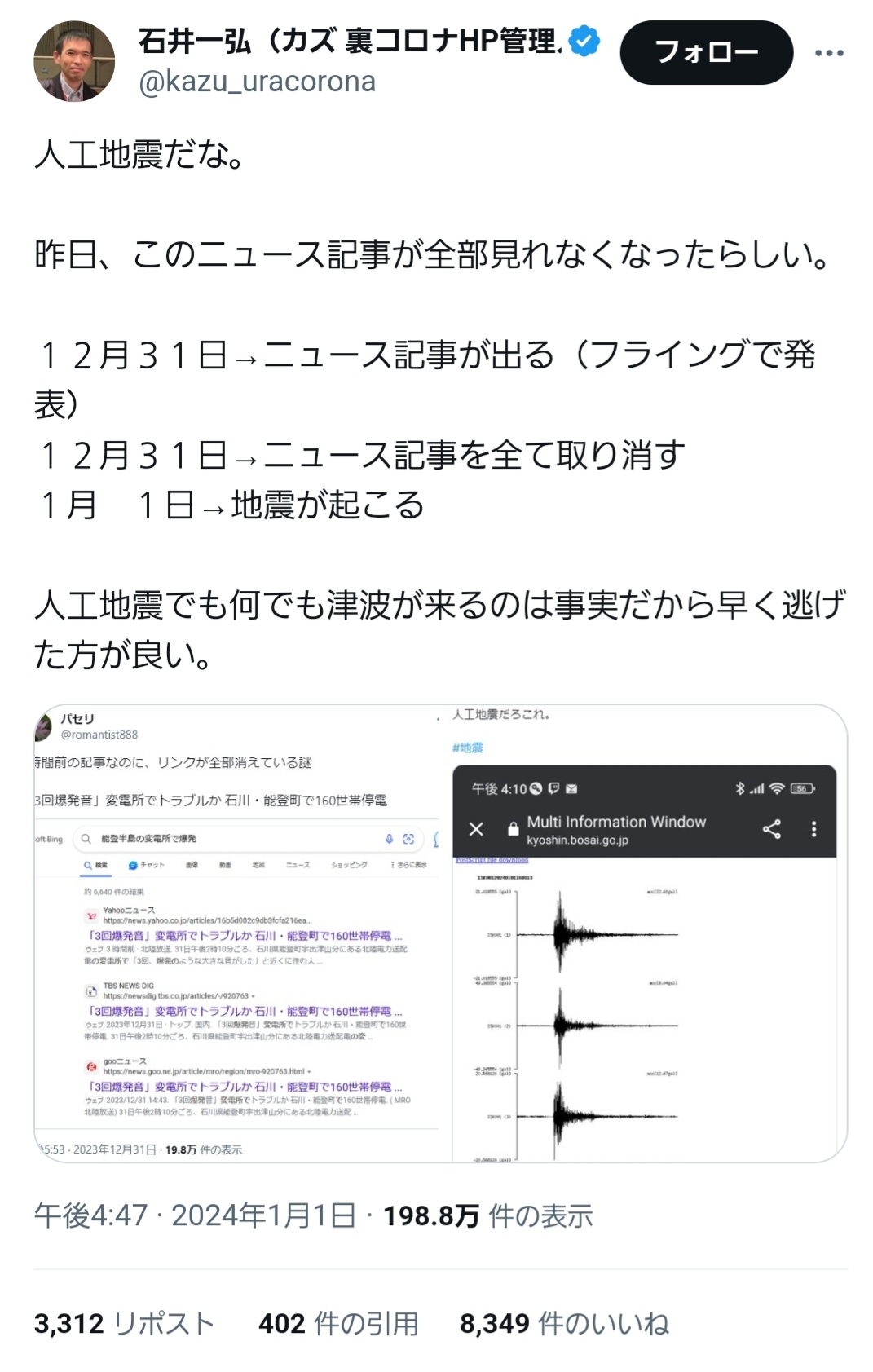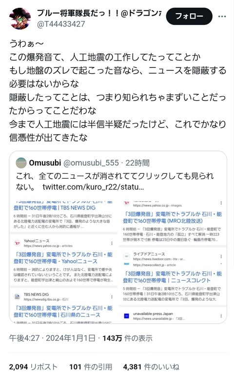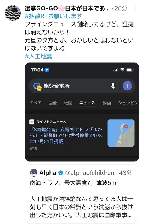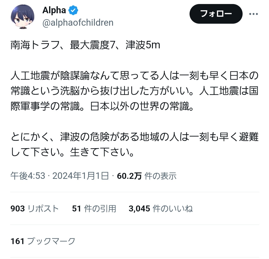 人工地震とか言って地震来る事分かってるなら予め地震保険入っとけや