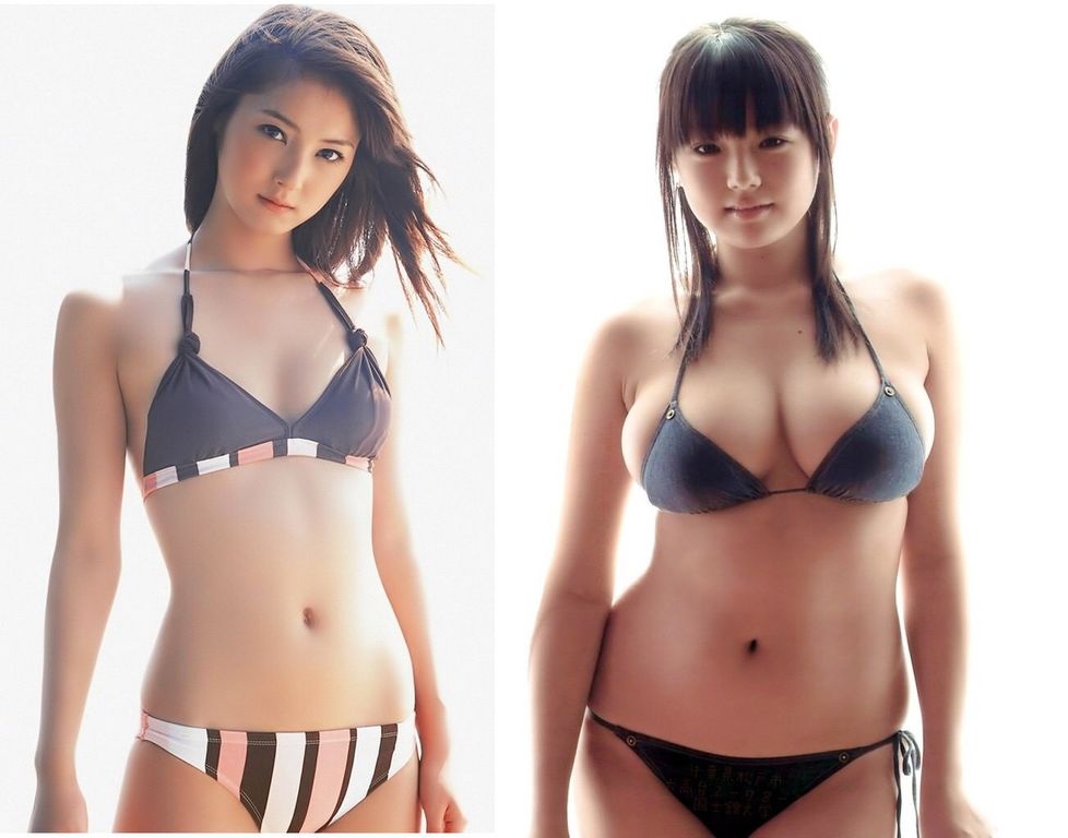 【画像】スク水を着た巨乳の女と貧乳の女が並んだ結果w